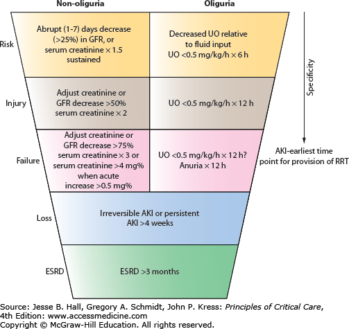 - The Acute Dialysis Quality Initiative established a multilayered definition of AKI called the RIFLE criteria.