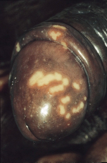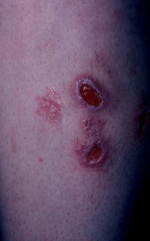 - Can occur on any part of the body but has a predilection for the legs, feet, and the perineum.