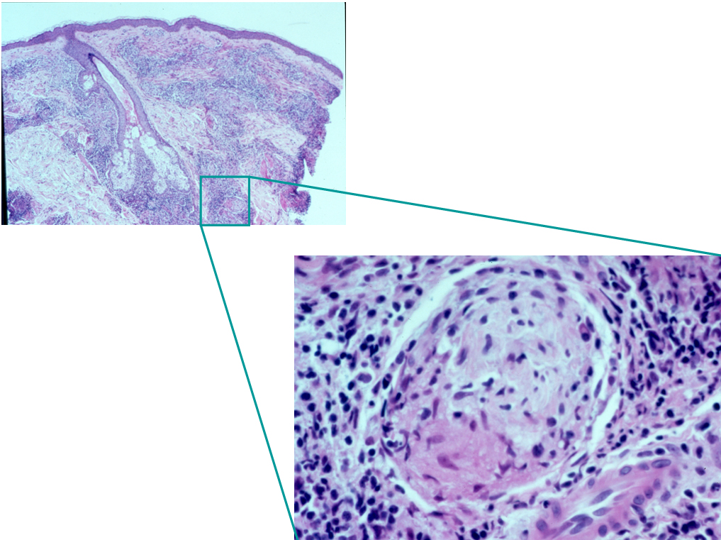 This is a variant of Lepromatous leprosy that presents with clusters of histiocytes and a grenz zone (an area of collagen separating the lesion from normal tissues).