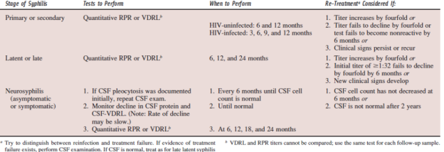 Secondary lesions subside within 2 to 6 weeks, and the infection enters the latent stage, which is detectable only by serologic testing. In the preantibiotic era, up to 25% of untreated patients experienced at least one generalized or localized mucocutaneous relapse, usually during the first year. Therefore, identification and examination of sexual contacts are most important for patients with syphilis of less than 1 year's duration. Recurrent generalized rash is now rare.