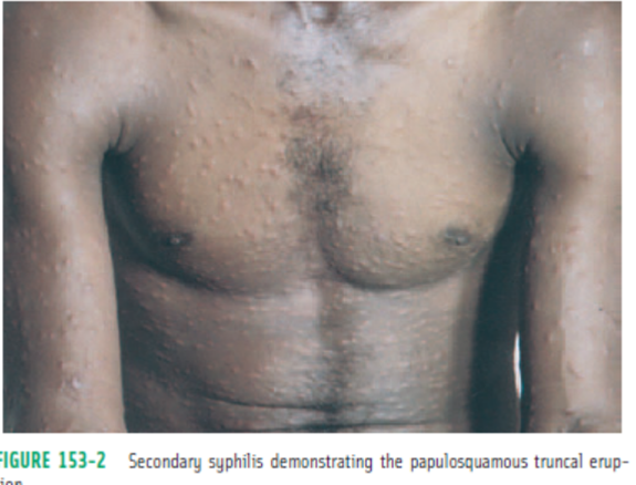 Like those of primary syphilis, the manifestations of the secondary stage resolve spontaneously, usually within 1 to 6 months.