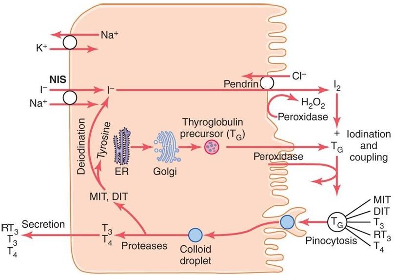 - Following TSH, iodinated Tg is reabsorbed back into the follicular cell
