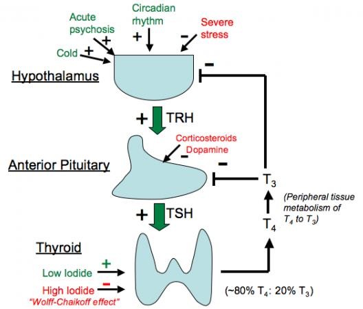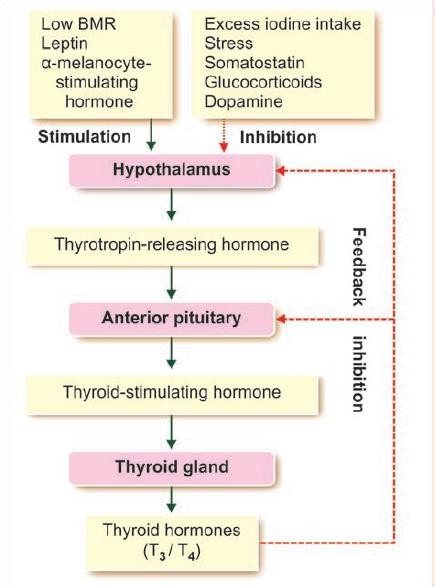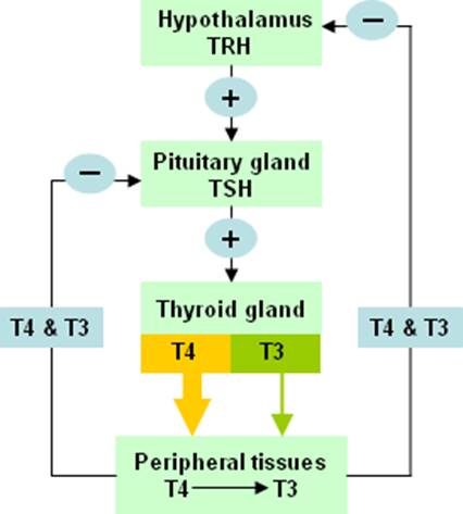 - When T3 and T4 are raised, TSH secretion is suppressed