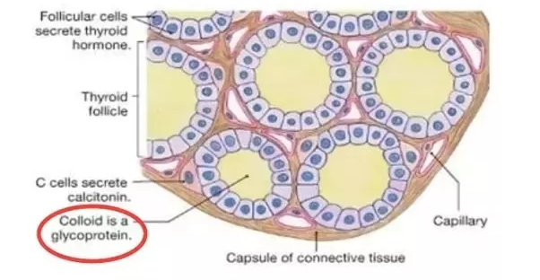 - A proteinaceous fluid containing large amount of Thyroglobulin (protein precursor of TH)