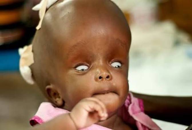 - Craniofacial disproportion in favor of the cranium
